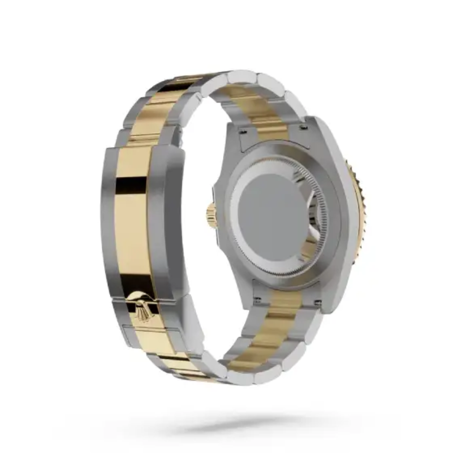 crafted from the same 904L stainless steel and coupled with a fold clasp in steel and yellow gold ensures not only adjustability